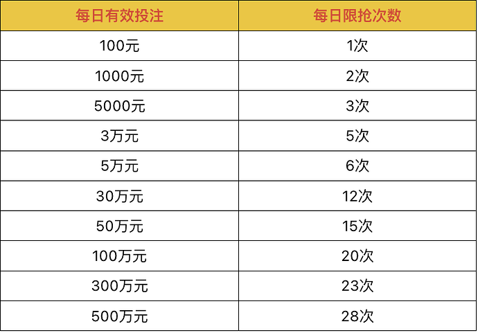 当日存款和打码达到活动要求可额外参与每日最高10次红包抢夺,单个红包最高91388元,心动不如马上行动,快快邀请好友一起加入参与吧~!