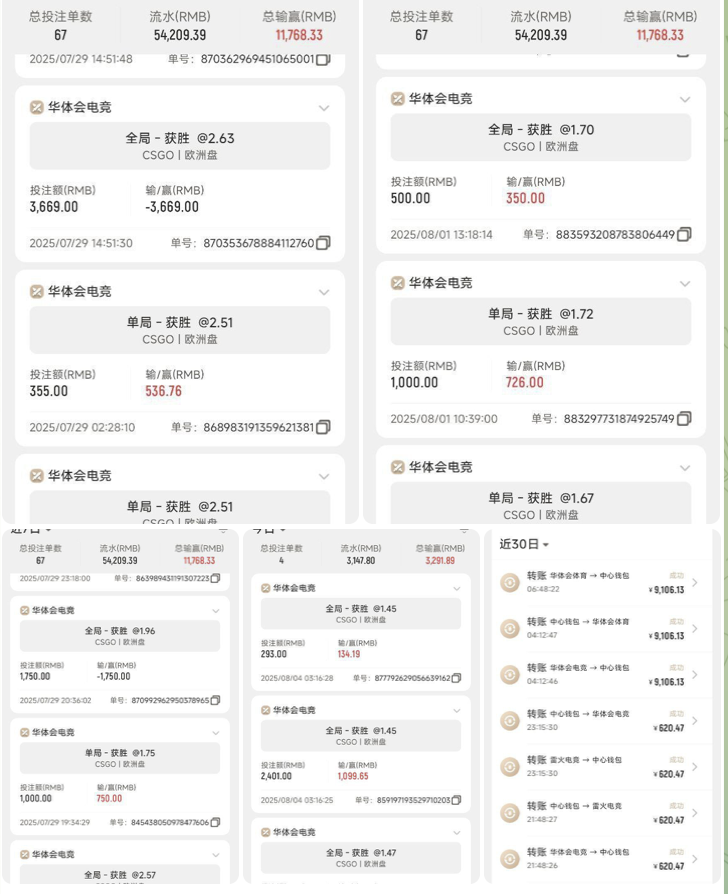 7月份月初输了1万5,昨日又充值一笔赚赚到了9千,结果凌晨说我违规投注,将钱全部扣除了。让他提供违规的记录,客服只能敷衍是系统检查+人工审核,又不能提供具体违规在哪。我亚博平台的都有玩,星光vip6了(一直都是正常投注,1万赢20万也出款过),在华体会一直只买篮球和电竞,不买百家乐电子那些,违规在哪,大家注意避雷【华体会】,赢点小钱就不给出款,账号抹除不给登录了,好在我投注记录有截图
