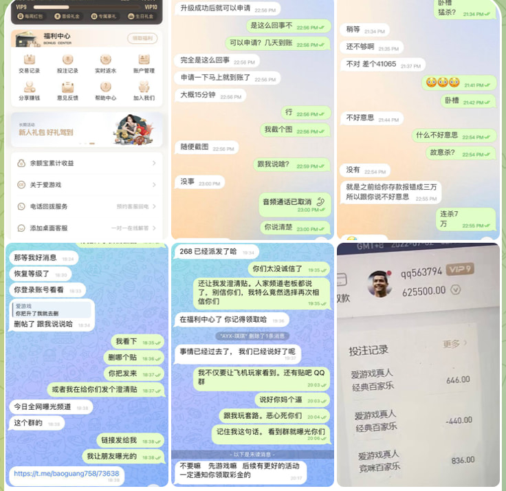 开云体育旗下公司,爱游戏体育,在2022 年五月份的时候输了380多万,然后公司的专员跟我说再充值40000 多可以领取svip礼金,总共18888。当时我已经是V9,没多想就同意了!结果到了第二天又说充值30000。 我依旧做了,然后跟我讲到了世界杯会给我。 直到今年2025 年临近这次世界杯都没给、然后第二个专员添加了我,说我澄清下曝光先把我等级恢复,然后首次充值有一笔神秘彩金,当时有曝光老板跟我说过别轻易信他们,我觉得毕竟是开云旗下的大平台,不可能言而无信,我就发布了澄清,然后再2025年8 月22日充值了4500。之后专员不承认了,直接给我发了一个活动图,紧接着跟我说要想要彩金请继续充值,并不是我一直纠缠他们不放,你们这么大一个平台怎么做的事野鸡台都做不出来,真不要点脸了吗、请大家擦亮眼睛,不要被爱游戏的承诺给骗了!此曝光每天发,直到世界杯!不接受澄清,丢你们的脸就行了。还是公司的专员给我承诺!请大家务必对爱游戏体育再三考虑!