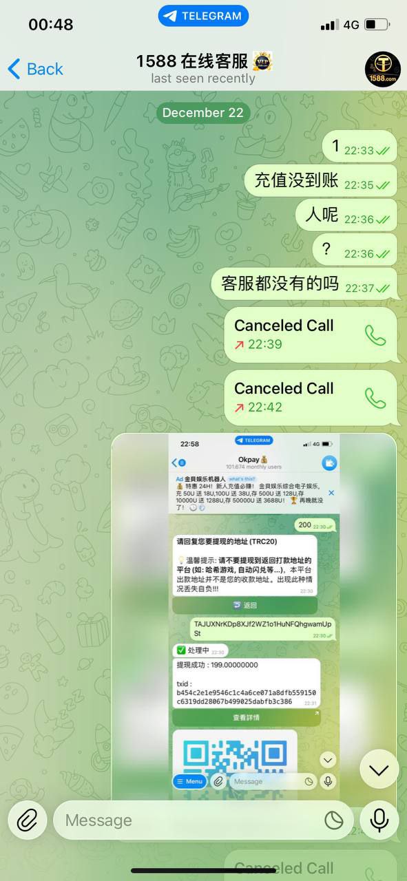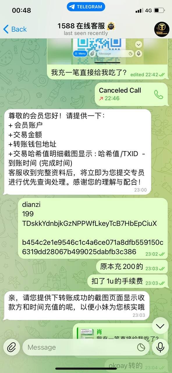 1588黑台子希望大家不要再去玩野鸡台子了,黑平台u地地址地址秒转入秒提走,闲来无事发现这个野鸡台子看着活动还行充200u进去耍耍,结果因为okpay扣了1u没自动到账,找了客服连带招商部都不懂?我不信一个开u盘的客服连这些都不懂,199u都黑也是一点格局没有了,纯杀猪盘,就当买个教训也让大家知道野鸡台子真的不能玩。